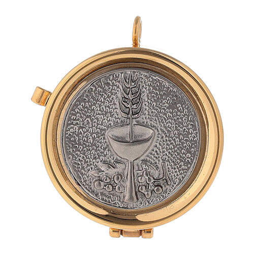 Host case with a decorative plaque with a height of 3 cm and a diameter of 5.3 cm.