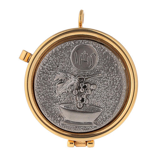 Host case with a decorative plaque with a height of 3 cm and a diameter of 5.3 cm.