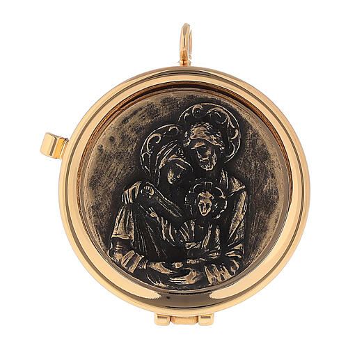 Host case with a golden decorative plaque with a height of 3 cm and a diameter of 5.3 cm.