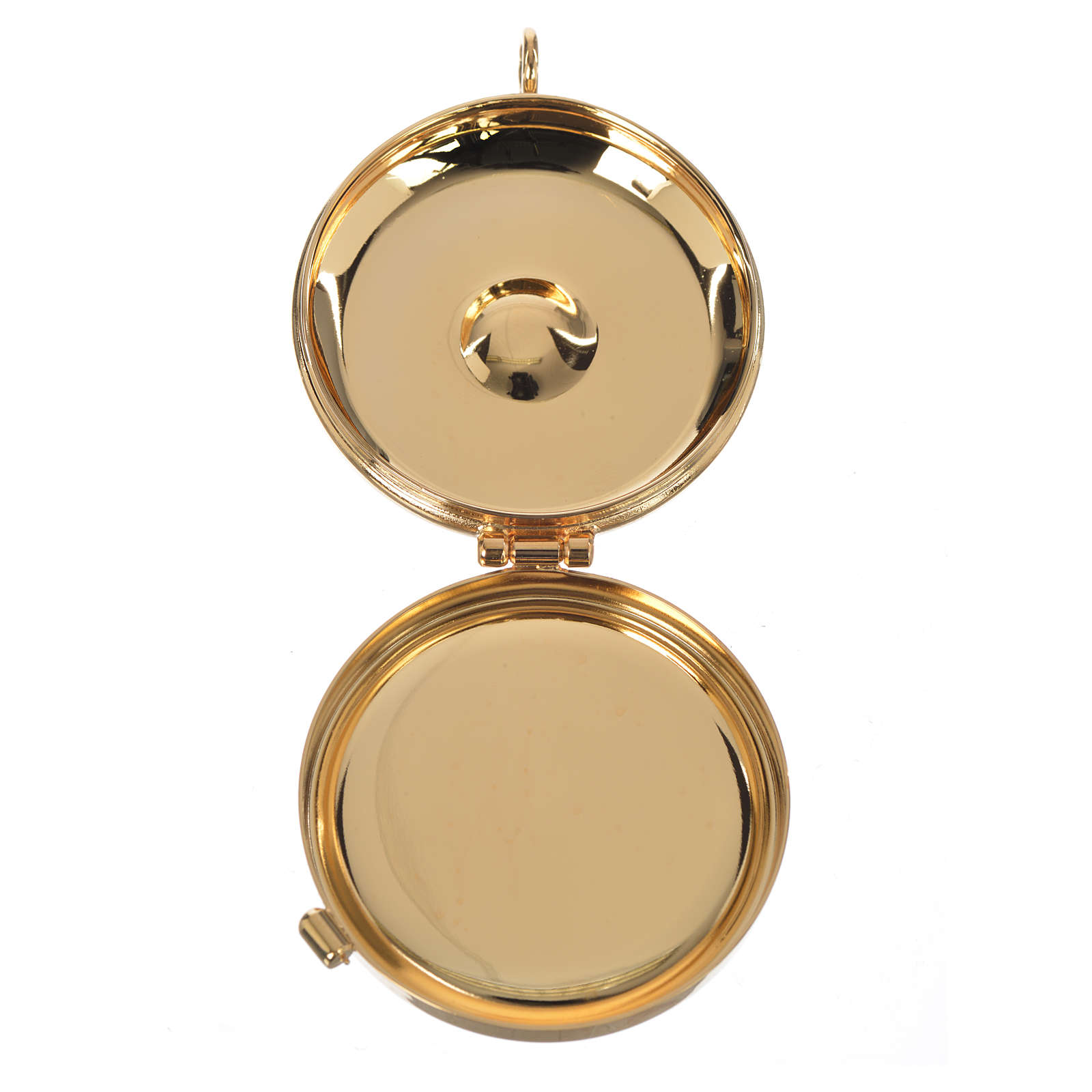 This pyx is made of brass and is entirely handmade by an Italian craftsman.