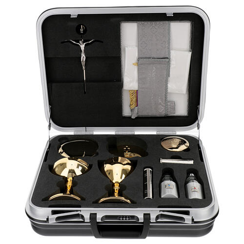 This portable celebration suitcase includes all the essentials for Mass. The ABS shell ensures security and durability, while the thermoformed interior provides protection against impacts.