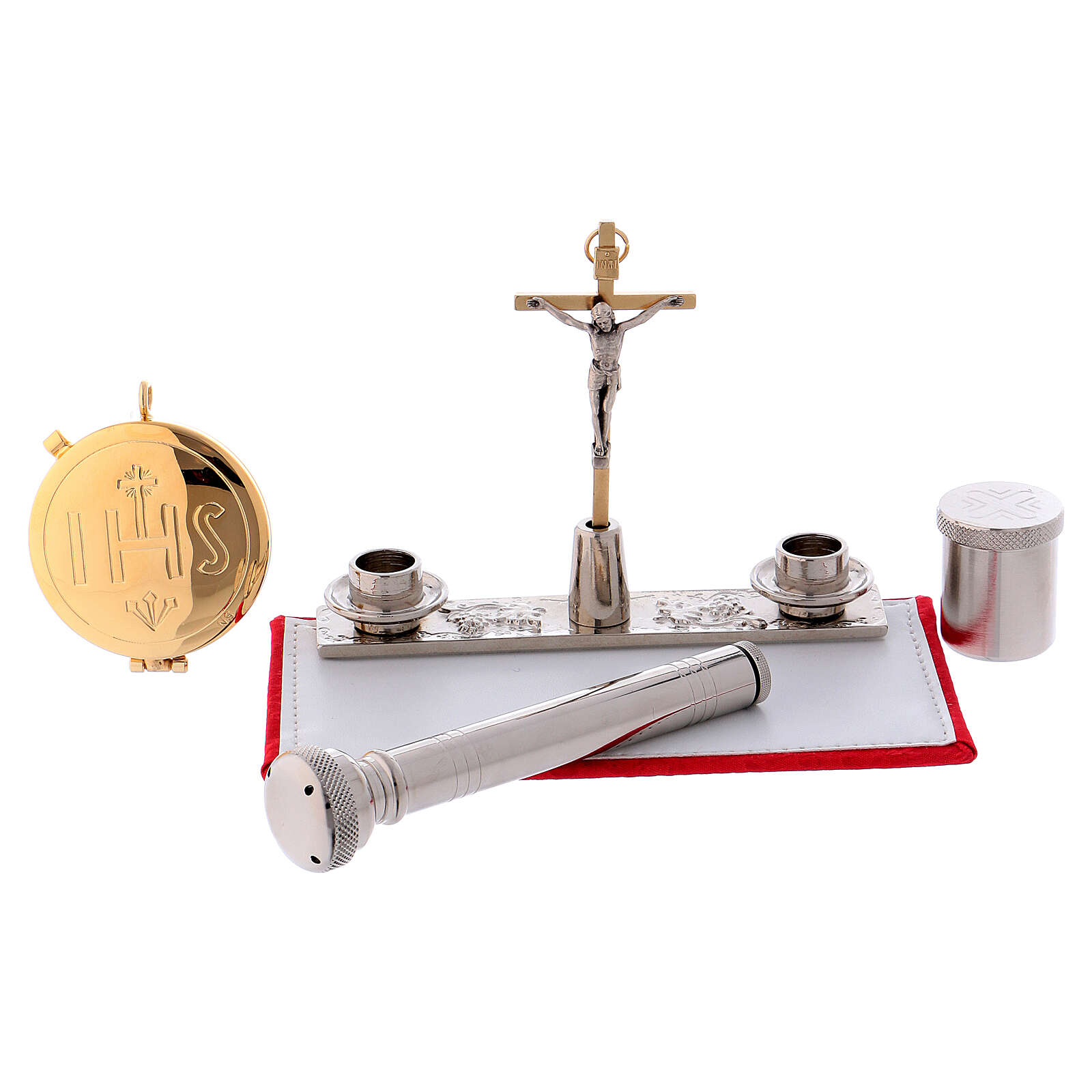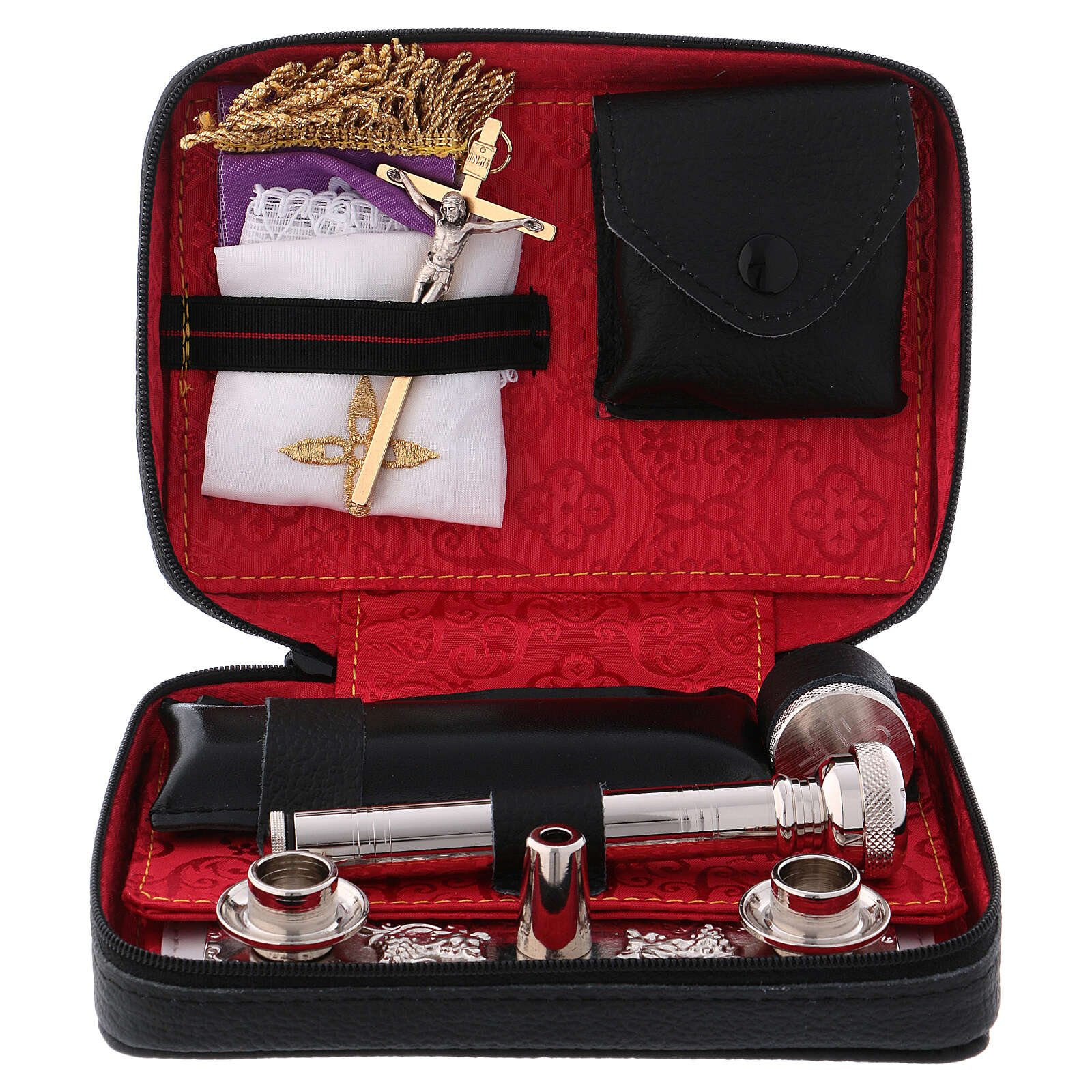 Mass kit coming in a leather case, lined with red jacquard fabric. It contains: