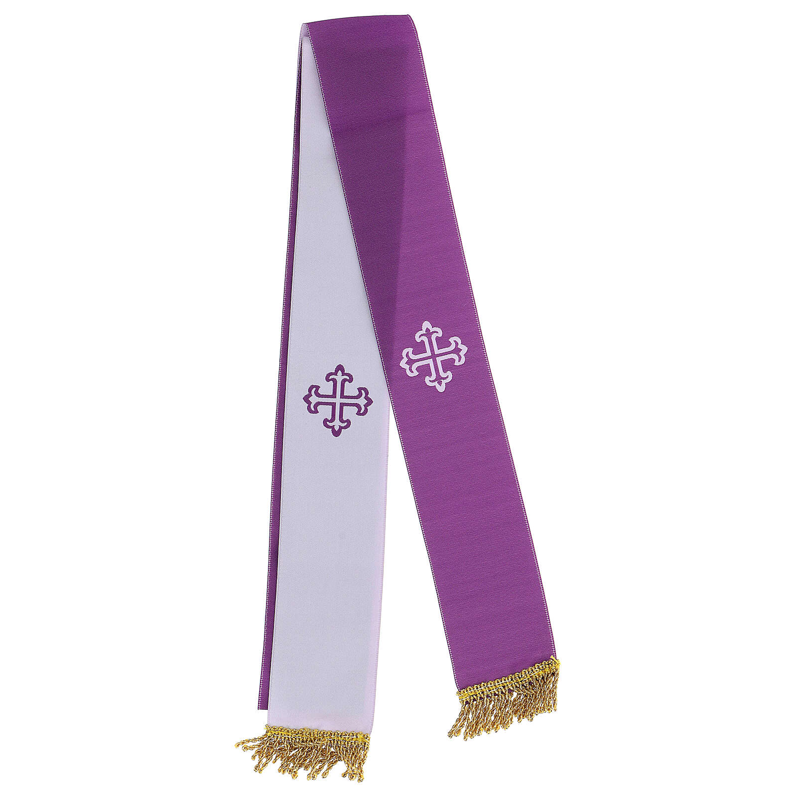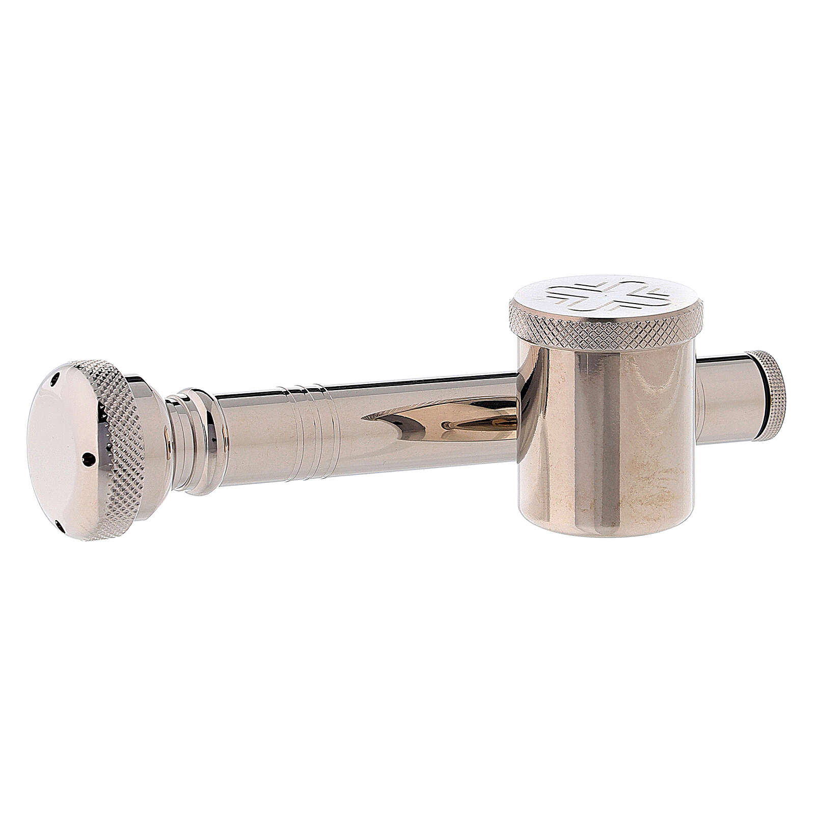 Mass kit with eco-leather case, lined with jacquard fabric, containing a panel which holds the items. It includes sprinkler, 24K golden brass chalice, plate, jar for Holy Oils, 30 ml bottles for water and wine, pyx, altar support for candles and cross, pastoral cross, wax candles, set of embroidered altar linens and a reversible stole.