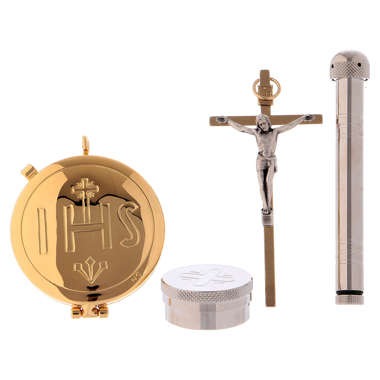 - a 24K golden brass pyx with IHS engraving