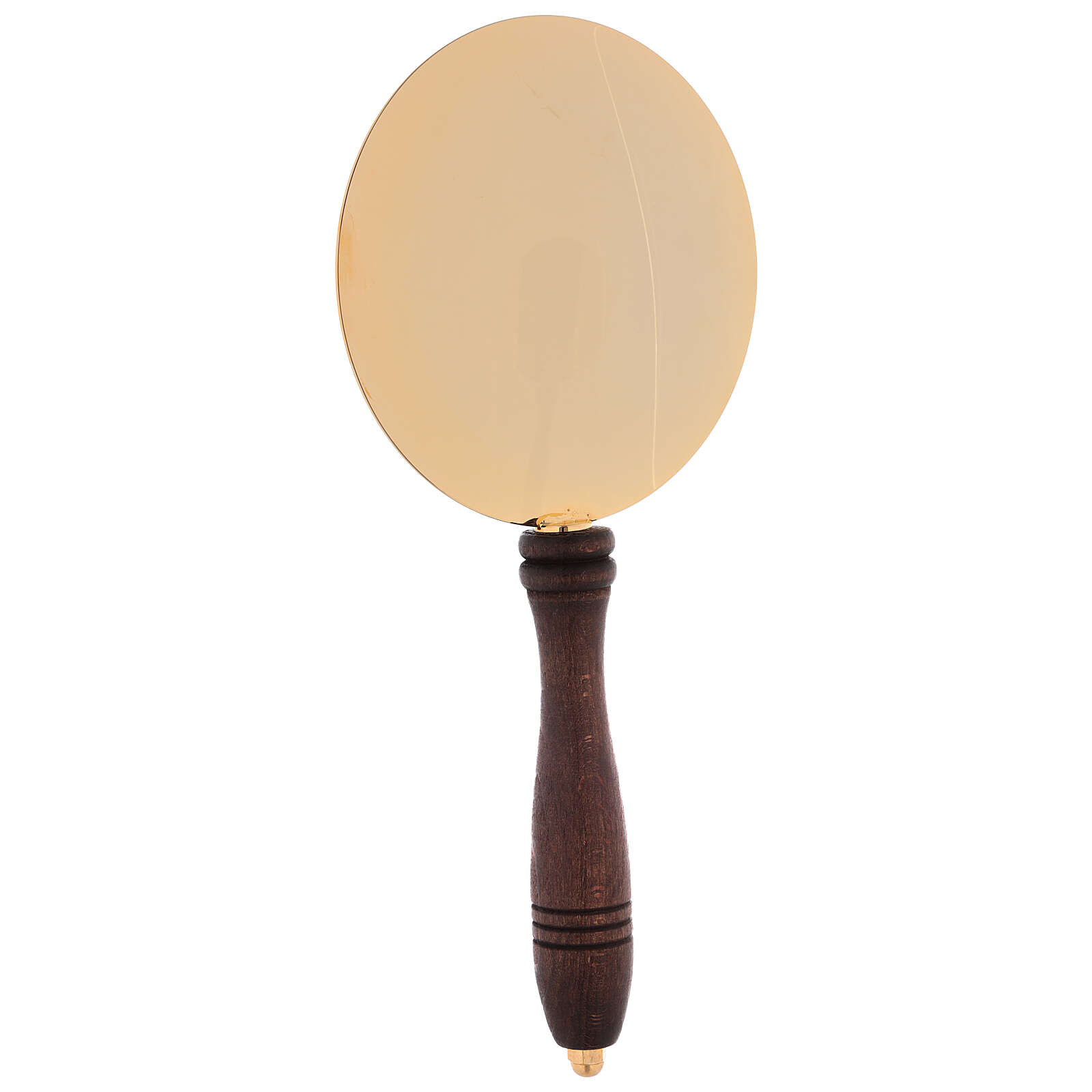 Communion plate in brass 24K with wooden handle.