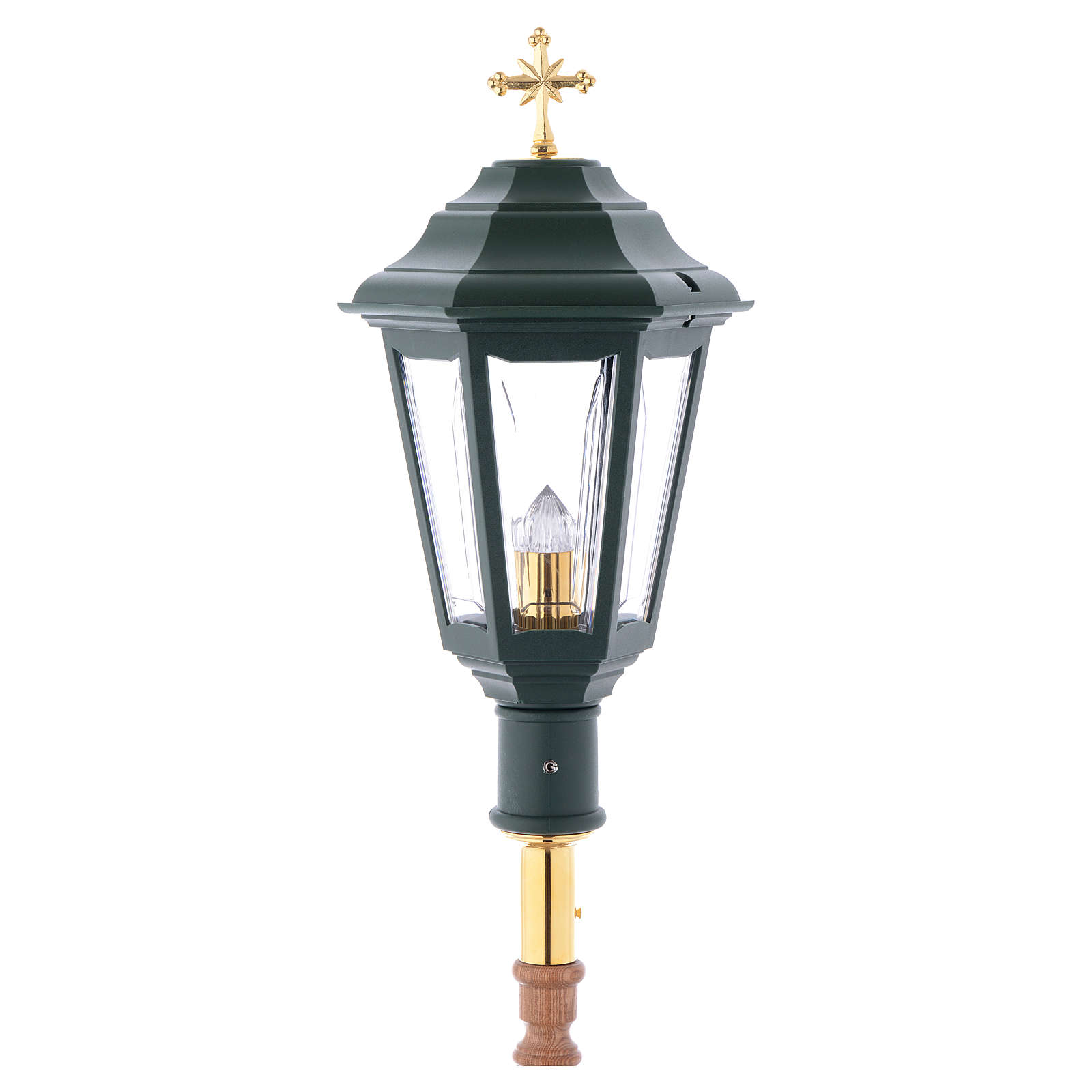 Procession lamp coloured in green with wooden handle sized 2 m.