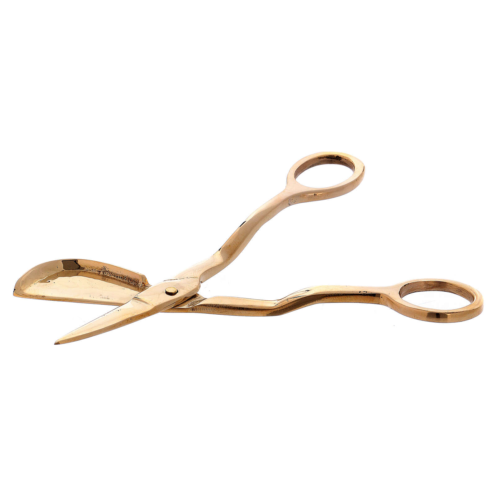 Shiny golden brass candle scissors.