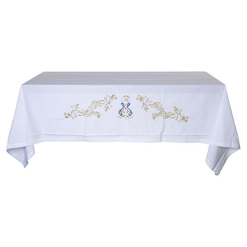 Marian altar cloth with crowned MA monogram, 63x118 in