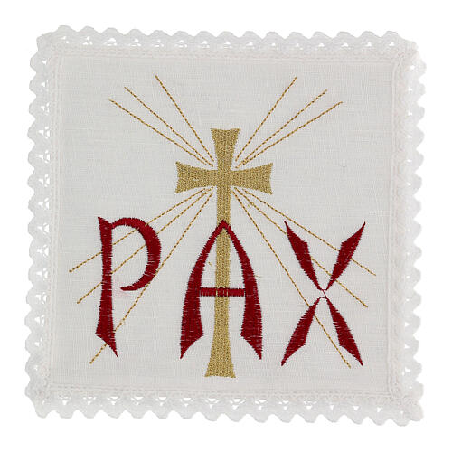 Altar linen red PAX and golden cross with rays