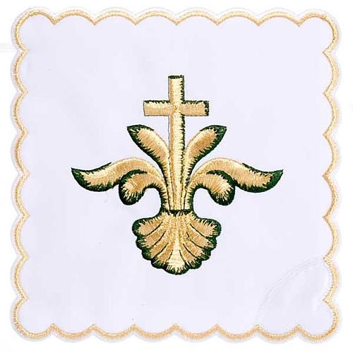 Purificator and lavabo tower made of 100% cotton, pall and corporal made of polyester.