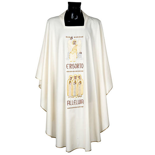 The chasuble and stole are made of 100% wool. Vestment handmade in Italy and machine embroidered with silk thread.