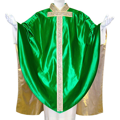 Medieval Chasuble in pure silk with gold silk lining. Available in the 4 liturgical colors. This Medieval chasuble is made in Italy in a workshop that has years of experience producing beautiful, high quality traditional products.