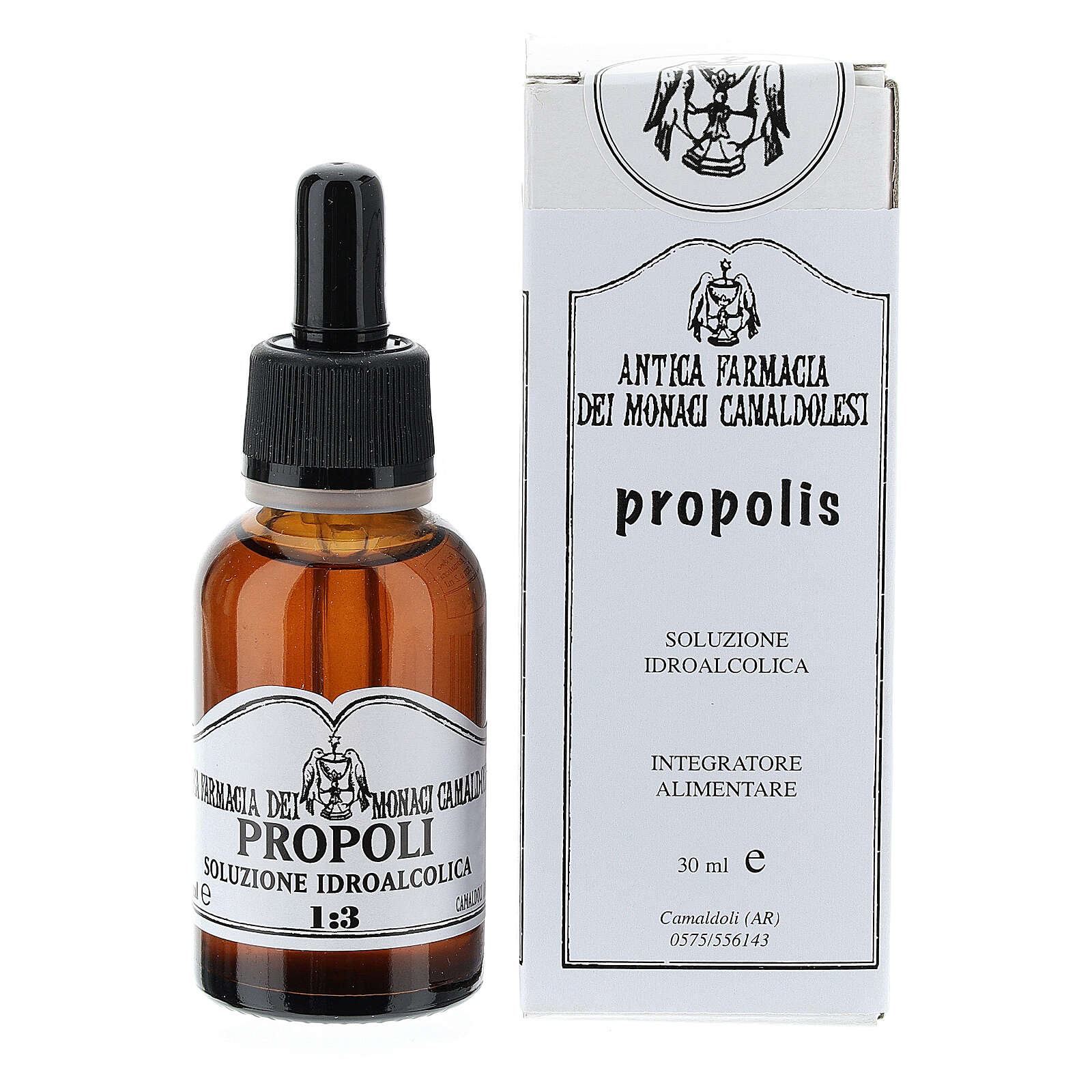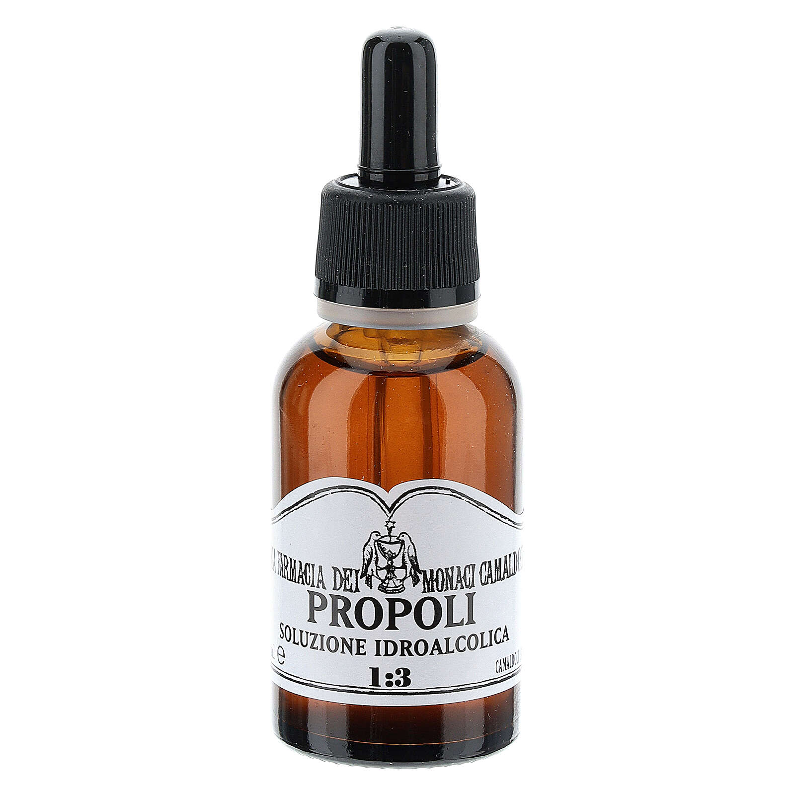 This solution is made with pure propolis soaked in alcohol and water. The colour of the solution can change depending on the type of propolis that has been used.