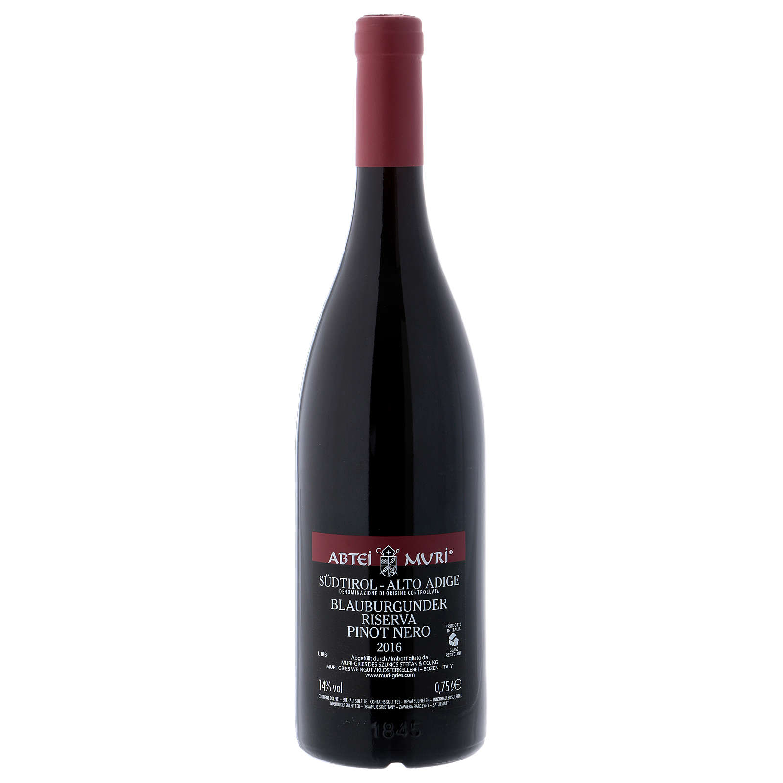Pinot Nero Riserva DOC red wine from the Muri Gries Abbey in Italy, of 2016. For more information please CLICK HERE.