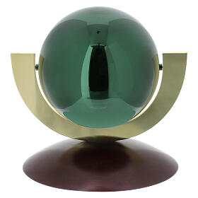 Cremation urn Ovazione, green lacquered steel sphere, mahogany base