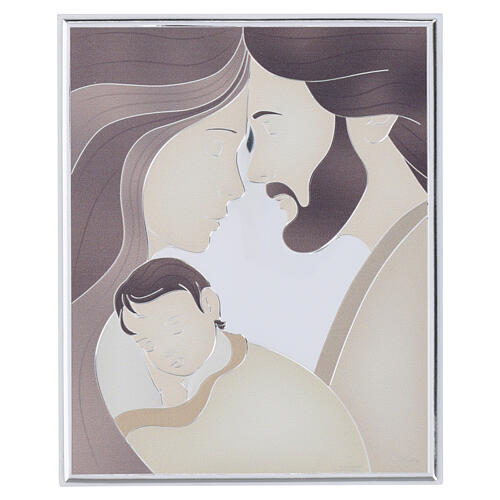 Painted icon with silver bilaminate, Holy Family, 8x6 in.