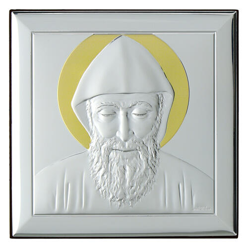 Picture of St. Charbel, silver bilaminate with golden halo, Valenti, 5x5 in
