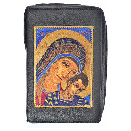 - Daily Prayer cover in black leather with image of Our Lady of Kiko with zip