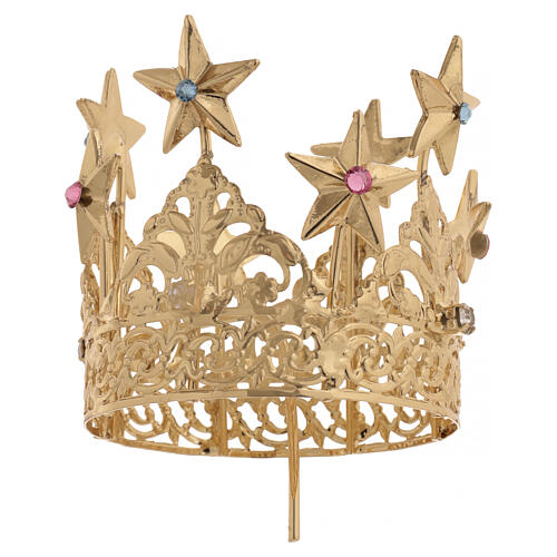 Our Lady's crown with stars, gold plated brass, 5 cm. Crown for statue of Our Lady, made of 6 stars of gold plated brass. Handmade in Italy.