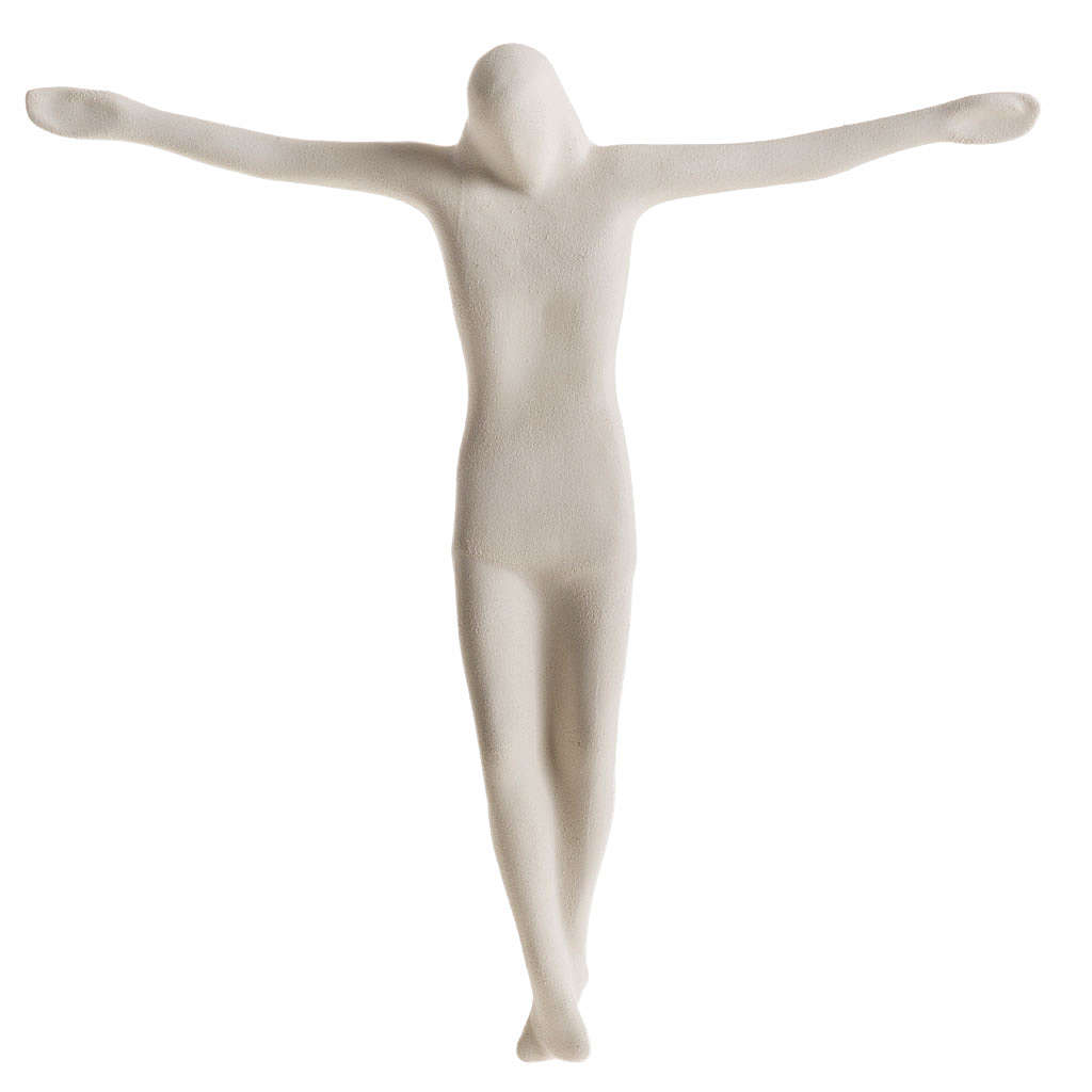 Bas-relief in fireclay depicting Jesus Christ body. This stylized statue is firstly hand worked, then baked at more than 1000° degrees and hand finished.