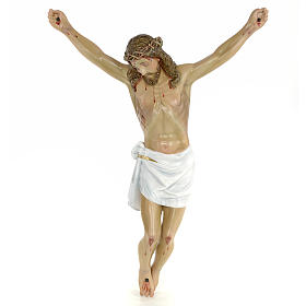 Crucifix with painted resin body, olivewood, Valenti, 14 in