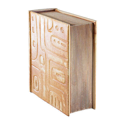 Light brown and gold book-shaped urn, 10x5x12 in, 5L.