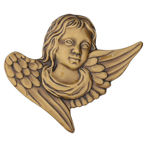 Bronze angel plaque with right-facing wings for outdoor use, 5x6 in.