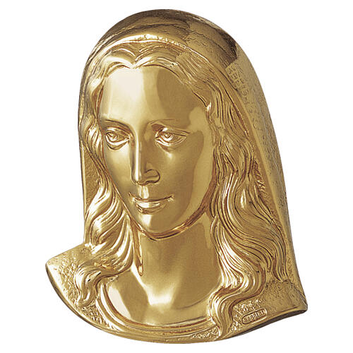 This golden wall plaque, perfect for embellishing niches, tombstones, and plaques, depicts the Virgin's face looking to the left (her right).