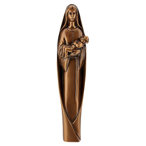 Modern bronzed Virgin with Child outdoor statue, 16x4x2 in.