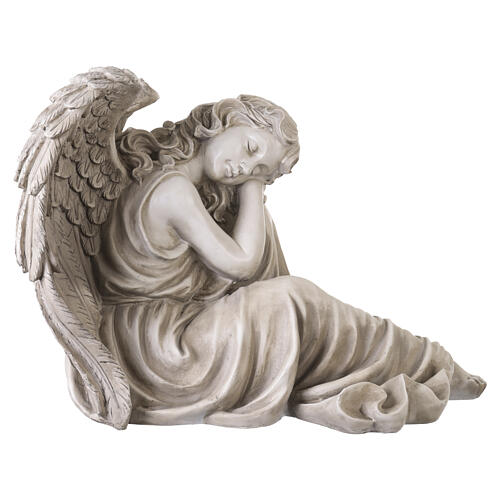 Sleeping angel outdoor statue in light-coloured resin 50x65 cm