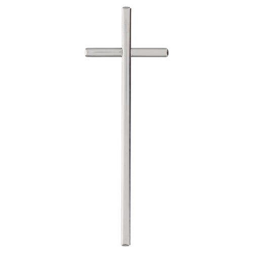 Designed for commemorative and religious applications on vertical surfaces, this wall-mounted cross reproduces a Latin form with proportioned arms and a uniform section, appropriate for funerary and tombstone contexts.