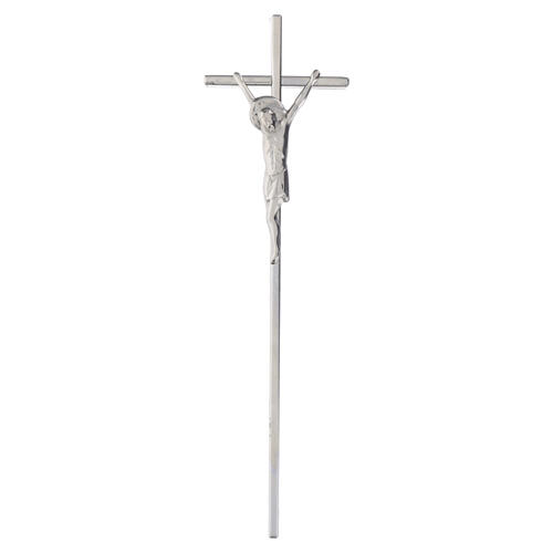 Wall cross with body of Christ for commemorative and religious applications on vertical surfaces, made of steel.