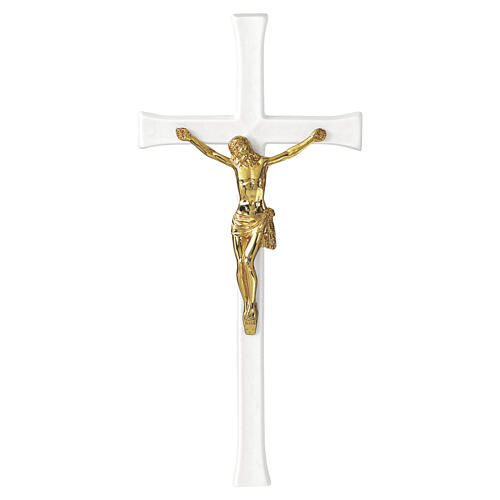 White enamelled cross with golden body of Christ for outdoor use