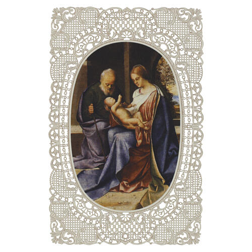 Holy Card Madonna and Child with Saint Joseph, 5x3 in, lace-edged