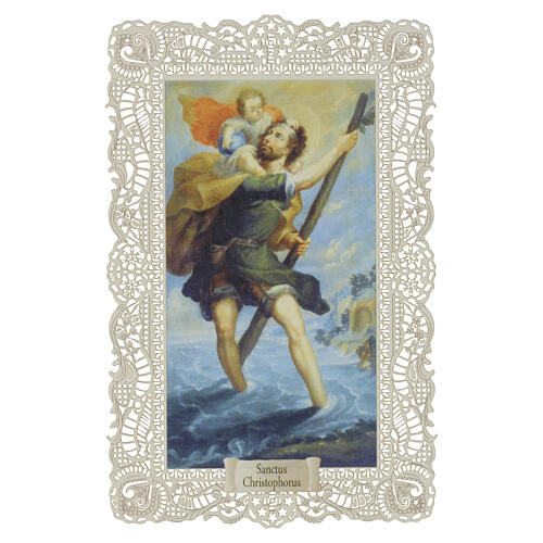 Saint Christopher holy card with Baby Jesus, 5x3 in, lace border