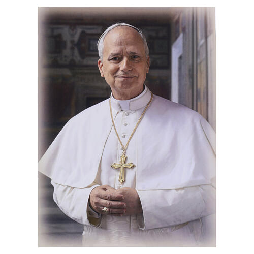 Image of Pope Leo XIV in white cassock, 8x6 in