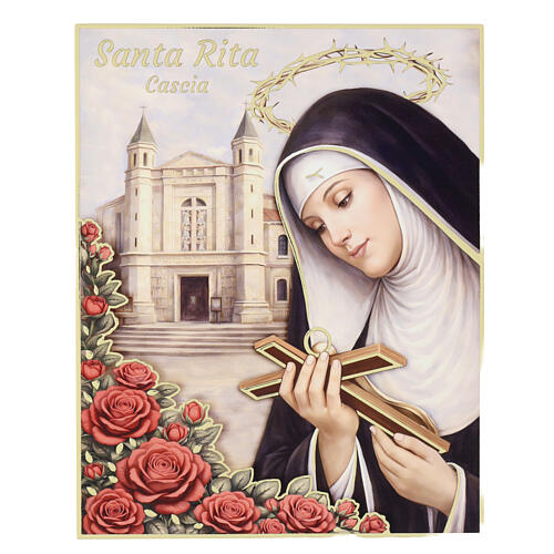 Saint Rita of Cascia, printed wood picture by Valenti, 9.8x7.9 in.