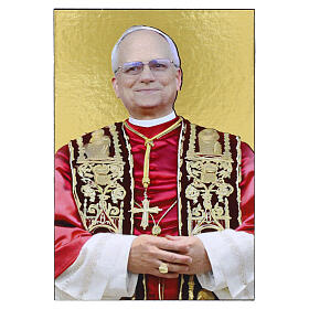 Print on wood, Pope Leo XIV, gold and silver frame