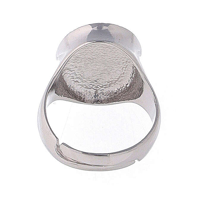 Silver ring with image of the Miraculous Medal. The size is adjustable (minimum diameter: 18 mm). The product is entirely made in Italy by a company specialised in silver jewelry production.