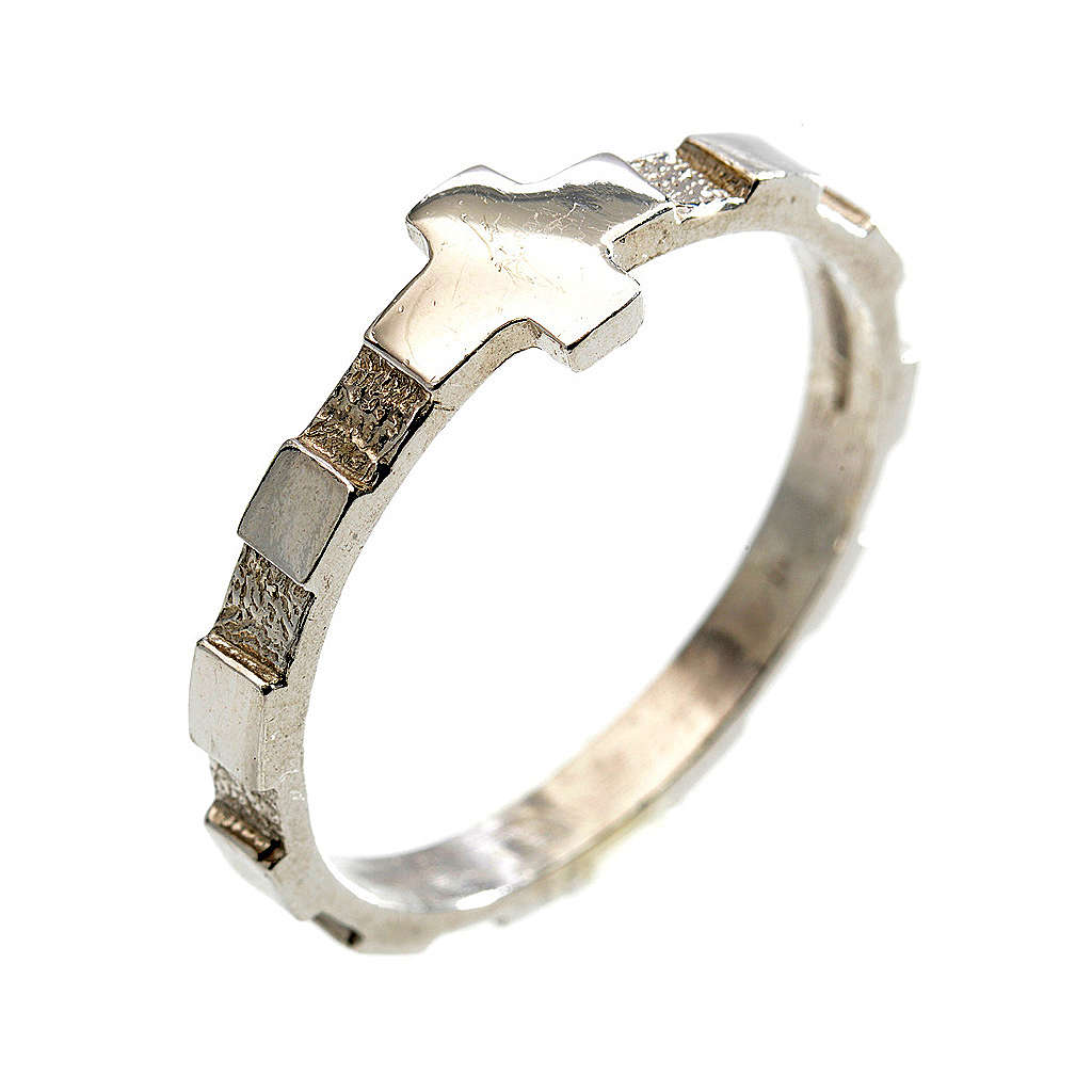 Precious one decade finger ring in modern style. Internal punching as sterling silver warranty.