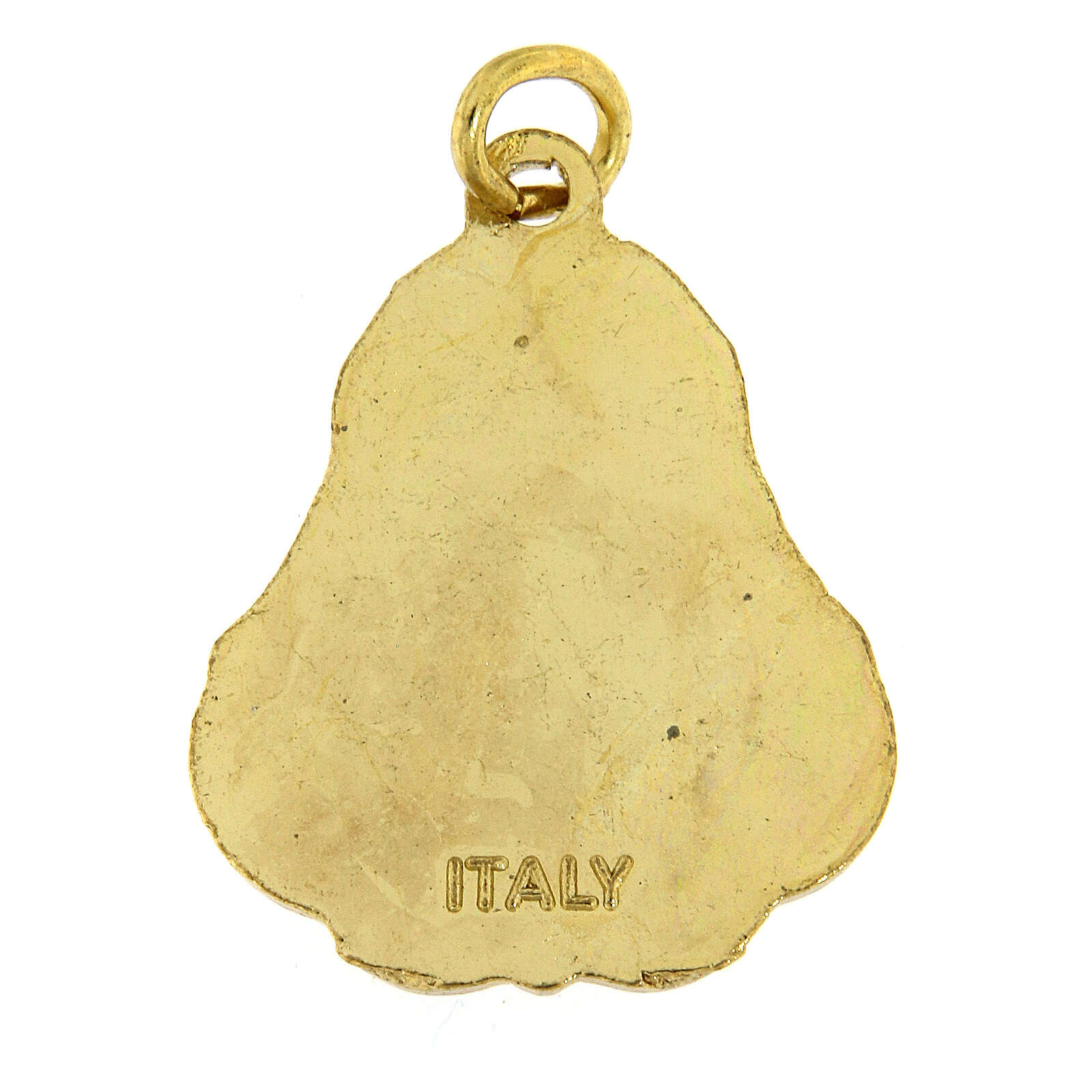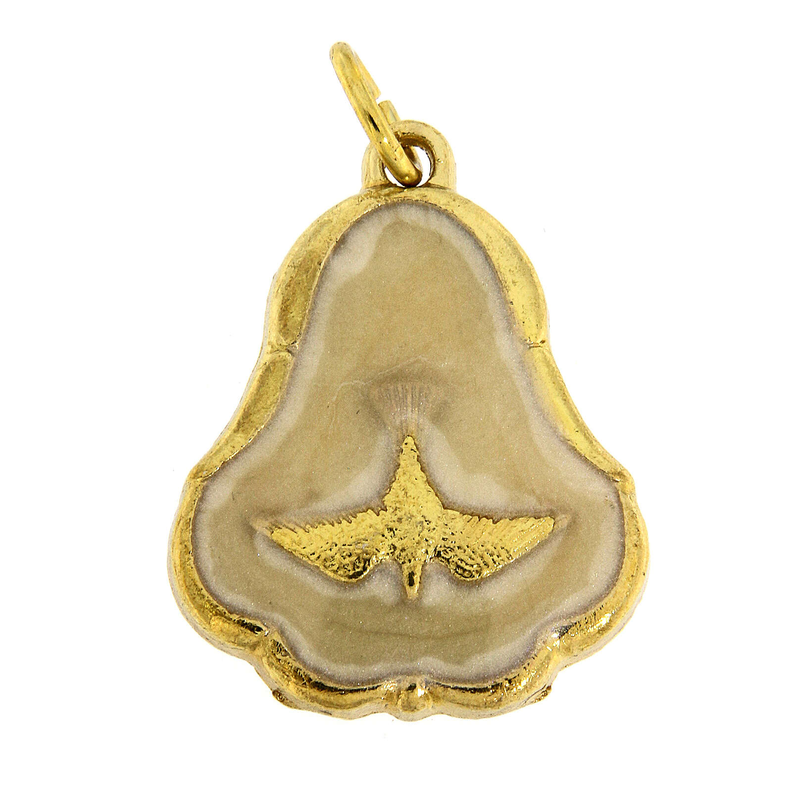 Metal pendant with gold finish and white enamel in the background with Confirmation symbol.