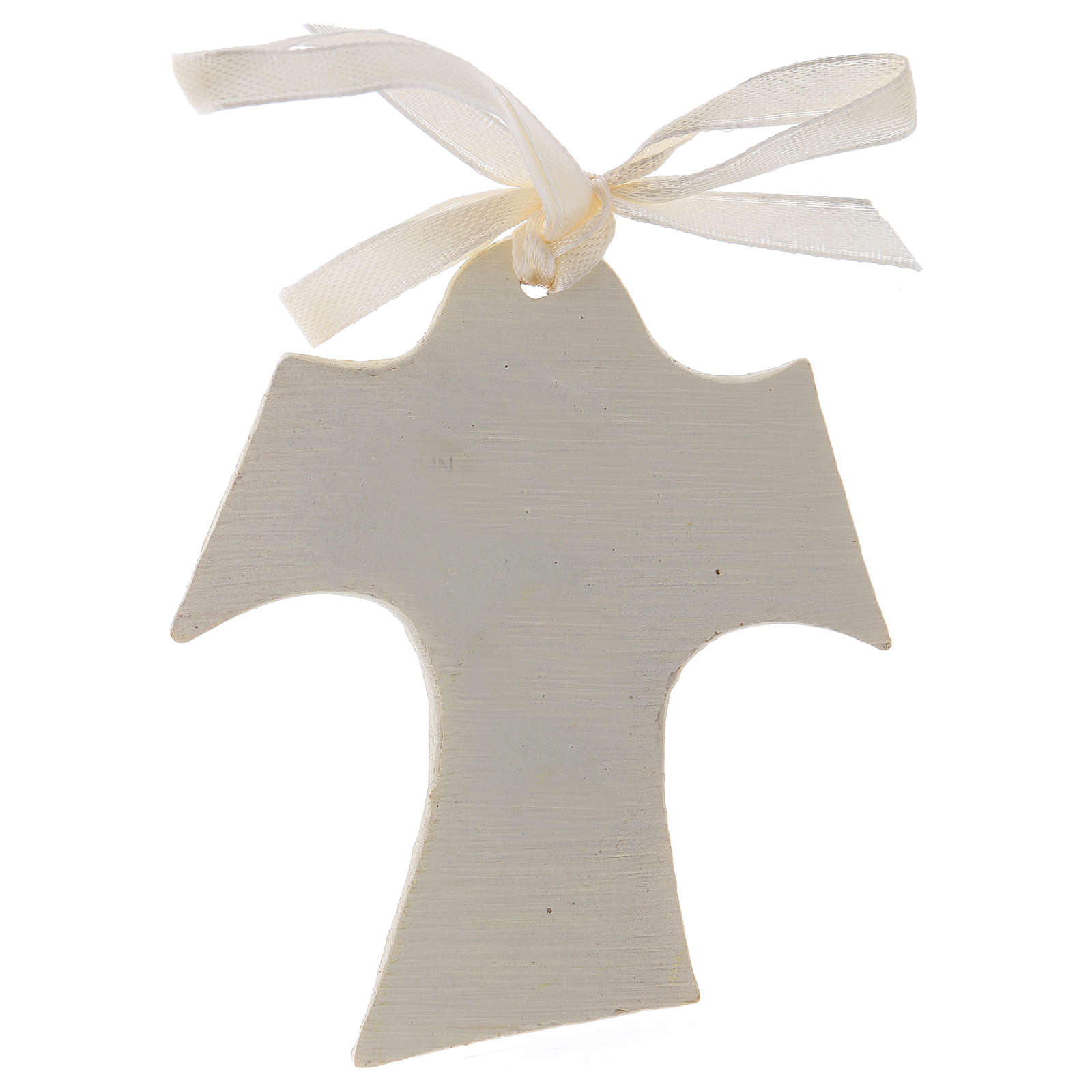 St. Francis' Tau with praying boy in resin 8 cm.