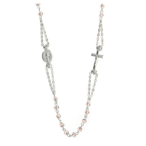 - Pink rosary choker, zamak and glass, Miraculous Medal and 3 mm beads