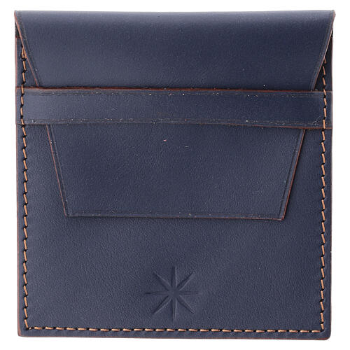 Blue smooth leather rosary case, 3.5x3 in.
