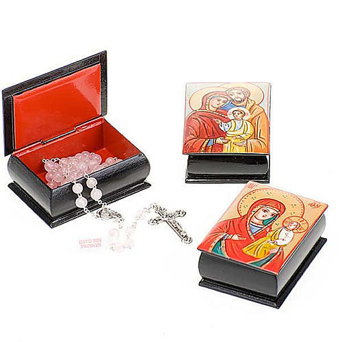Elegant box suitable to contain 7mm bead rosaries. The hand-painted images on the box depict the icon subjects typical of the Byzantine-Russian tradition. The images can be slightly different from those shown in the picture as they are entirely hand-painted. Choose the desired model.