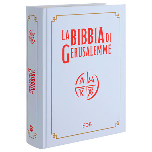This Bible, a new edition of the popular Jerusalem Bible from Edizioni Dehoniane of Bologna, is large for family reading and children's education. It has 3060 pages, an elegant white glossy cardboard cover and an internal scroll for dedications and greetings.