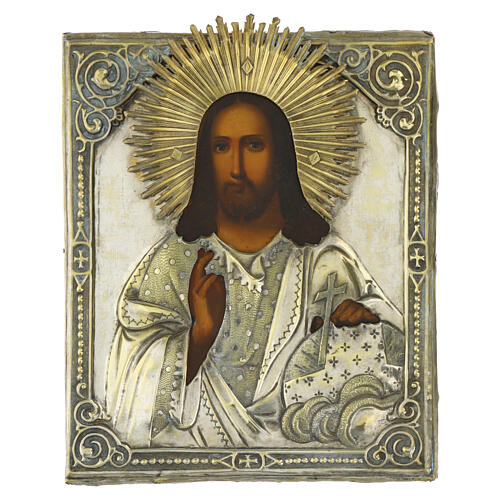 Antique Russian icon from the 19th century depicting Jesus Pantocrator.