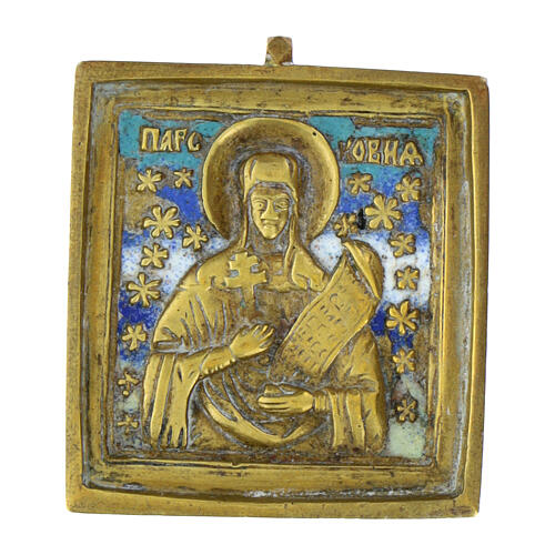 Ancient Russian icon of St Paraskeva, bronze, 18th century, 2x1.9 in