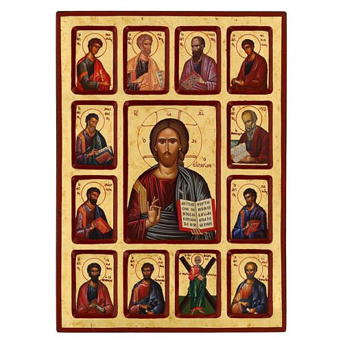 Greek icon of Christ Pantocrator and 12 Apostles, 16x12 in, screen-printed.