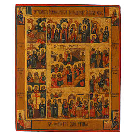 Twelve Great Feasts, restored Russian icon painted by hand on wood, 12x10 in